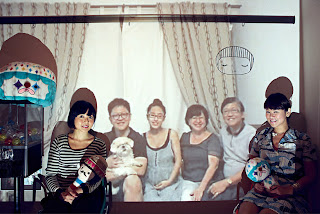 By New York-based photographer John Clang. His series entitled "Be Here Now" is a collection of images of families who are based on two different countries, with one set projected onto a wall.